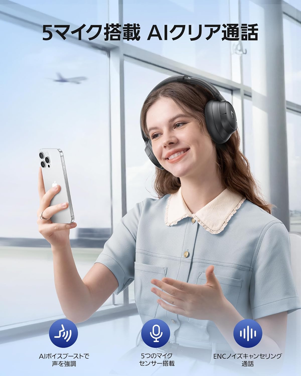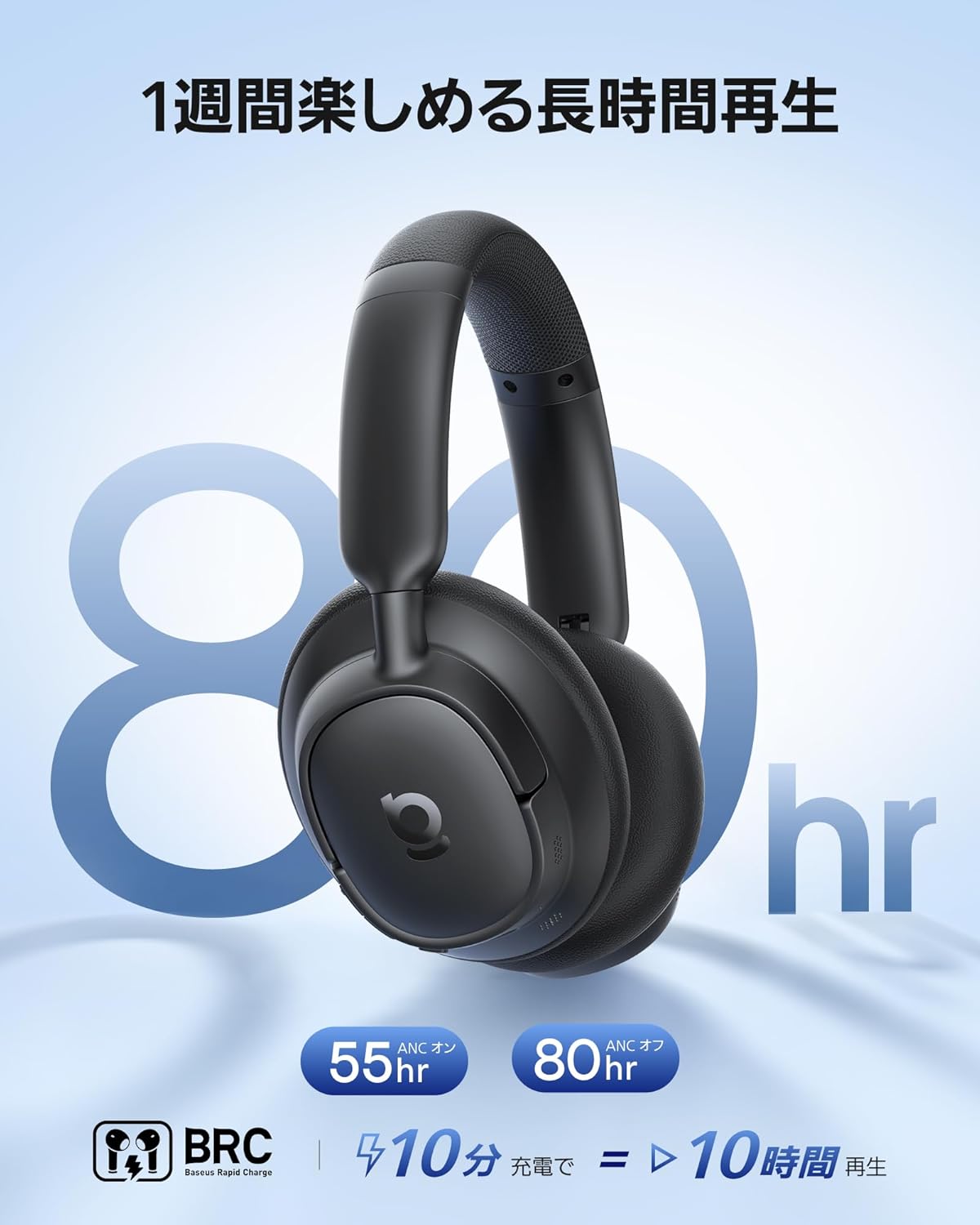 約80時間(ANC OFF) / 約55時間(ANC ON) ※音量50%の場合