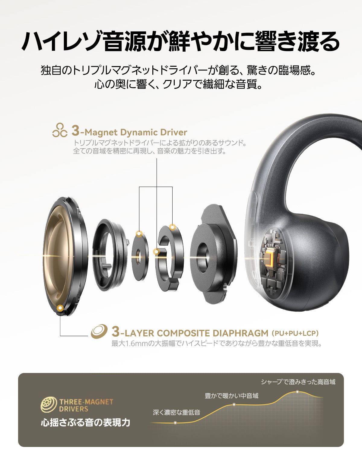 独自のトリプルマグネットドライバーが創る、驚きの臨場感。 心の奥に響く、クリアで繊細な音質。