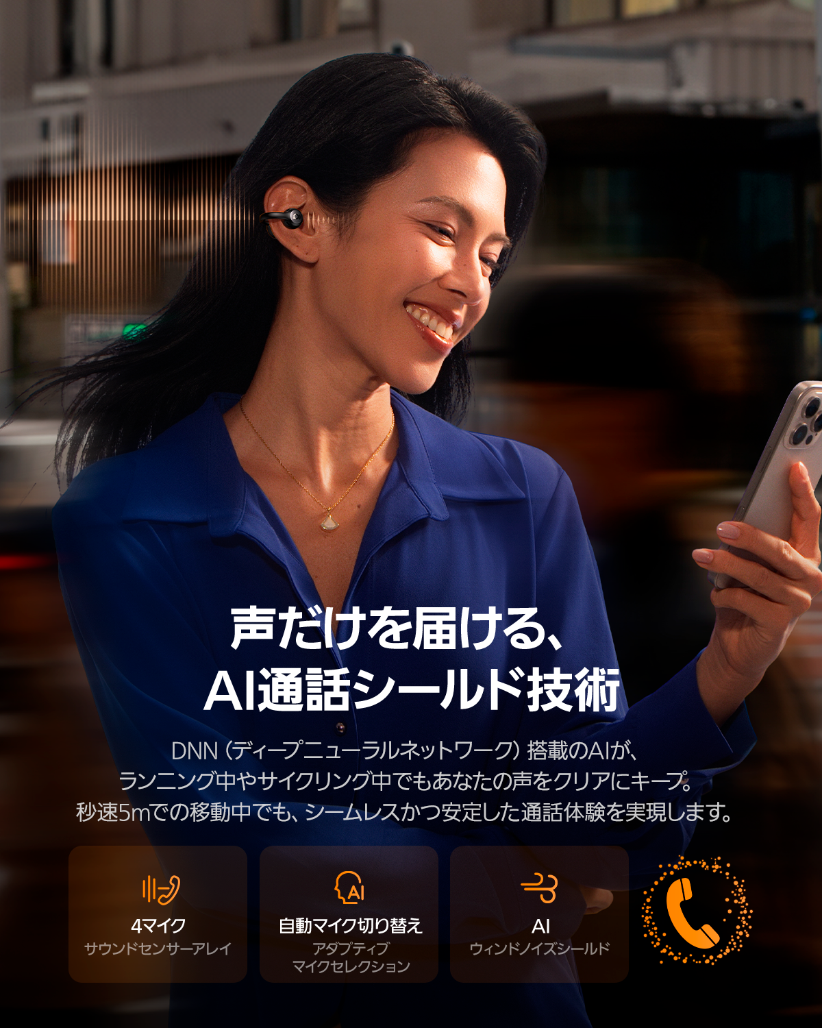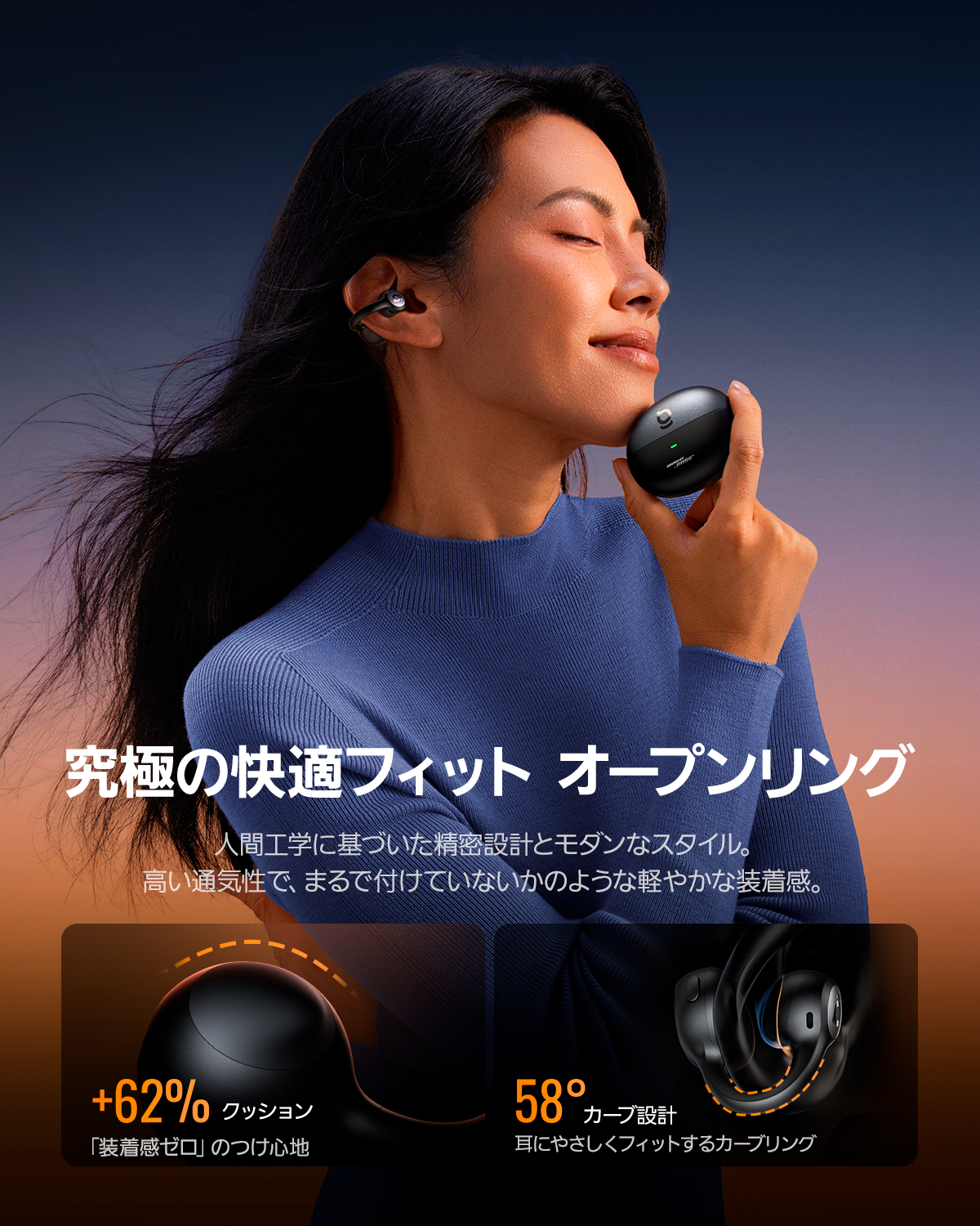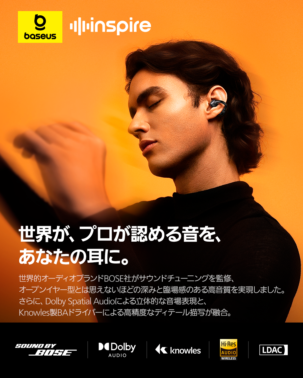 世界的オーディオブランドBose社がサウンドチューニングを監修。その音響哲学を受け継ぎ、オープンイヤー型とは思えないほどの深みと臨場感のある高音質を実現しました。