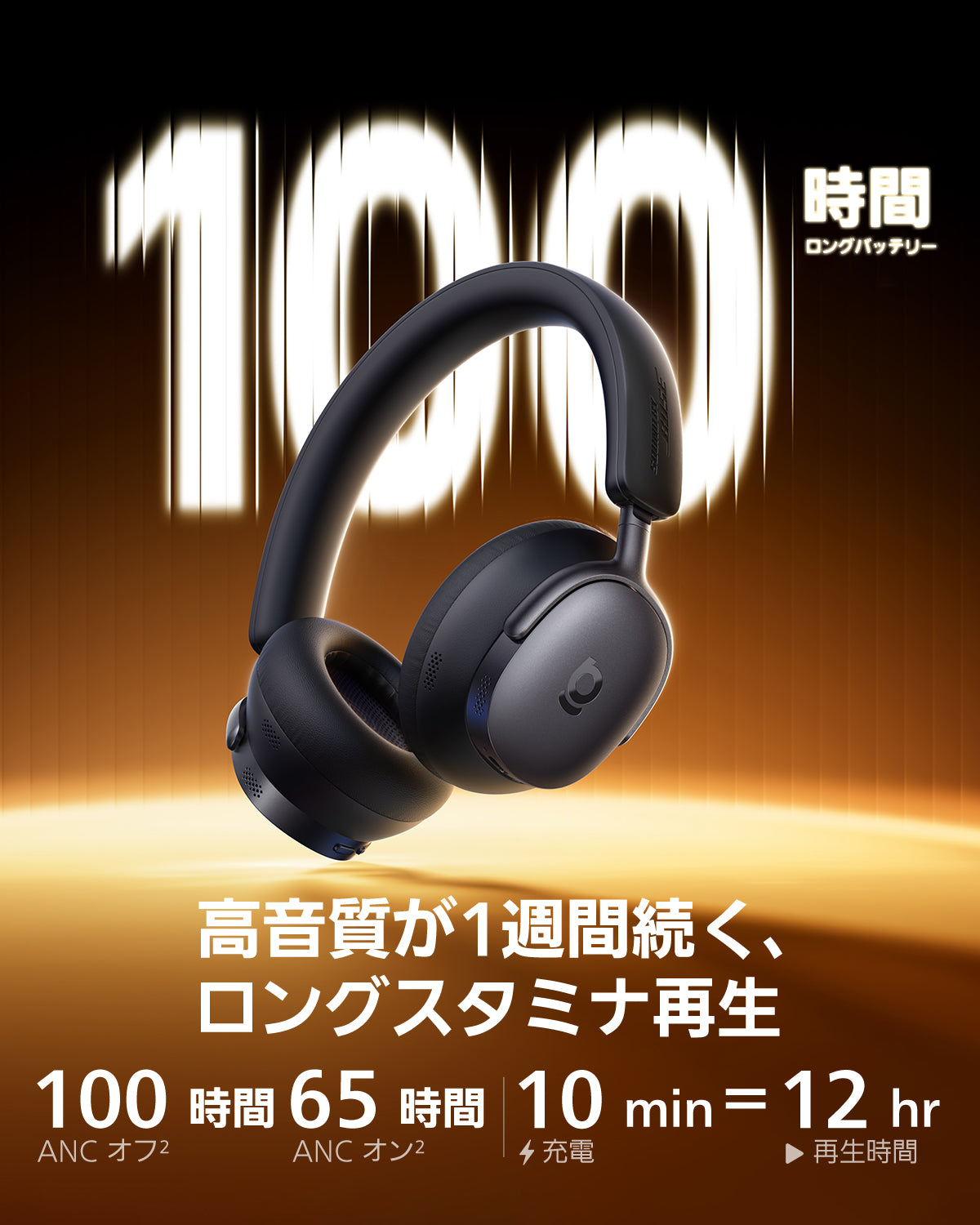 約100時間(ANC OFF) / 約65時間(ANC ON)