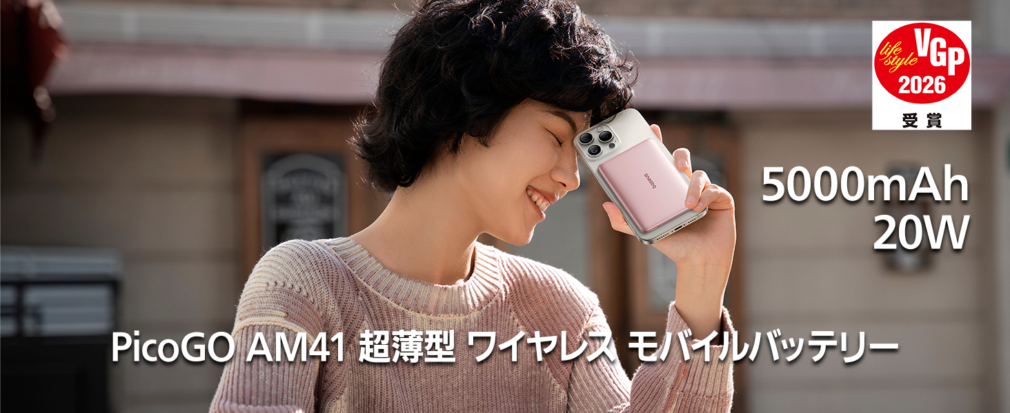 PicoGO AM41 超薄型 ワイヤレス モバイルバッテリー 5000mAh 20W