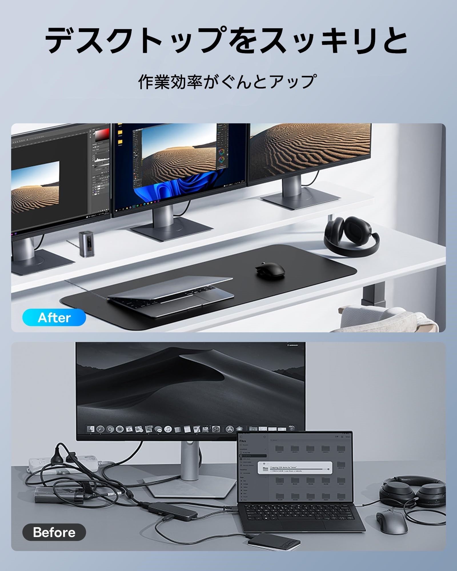 スマホも同時にワイヤレス充電もできるデスクトップのパートナー。コンパクトでノートパソコンの機能を大幅に拡張。